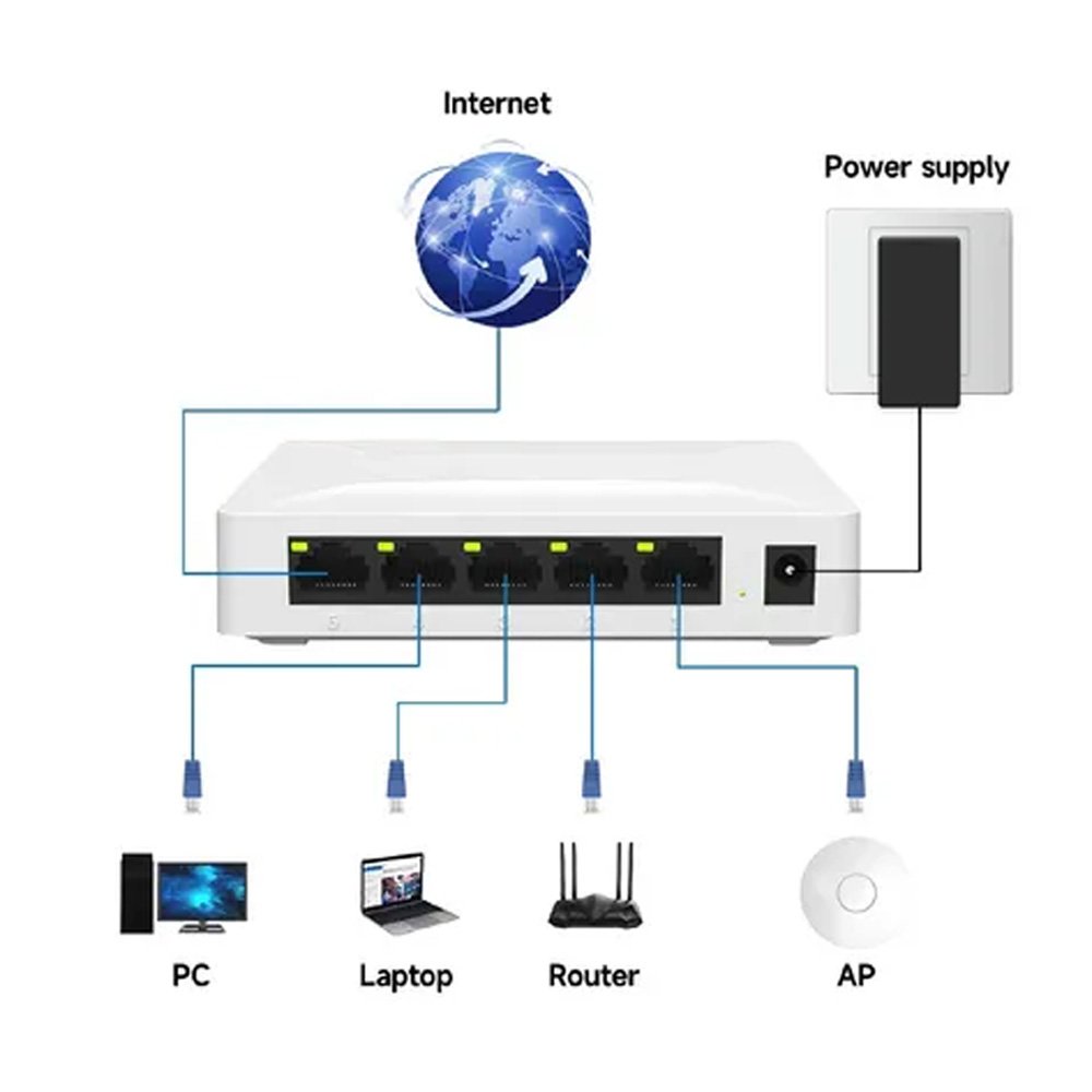Optimiza tu red dom stica o de oficina con este Switch Gigabit de 5 puertos RJ45 una soluci n poderosa confiable y pr ctica que ofrece velocidades de hasta 1000 Mbps por puerto Dise ado para brindar una transmisi n de datos r pida y sin p rdida de paquetes este switch es ideal para quienes necesitan una conexi n fluida y estable entre m ltiples dispositivos Gracias a su funcionalidad Plug and Play no requiere instalaci n ni configuraci n compleja solo conecta los cables y comienza a disfrutar de una conectividad eficiente Este equipo tambi n cuenta con Auto MDI MDIX lo que significa que se adapta autom ticamente a los tipos de cables conectados simplificando a n m s su uso Cada una de sus cinco puertas admite velocidades de 10 100 1000 Mbps con transmisi n bidireccional de hasta 2000 Mbps lo que lo convierte en una excelente opci n para conectar c maras IP Smart TVs consolas de videojuegos impresoras o computadores Su compatibilidad con los est ndares IEEE802 3z y IEEE802 3ab garantiza un rendimiento ptimo en entornos exigentes Adem s incluye indicadores LED por puerto permitiendo visualizar f cilmente el estado de la conexi n en todo momento Su modo de funcionamiento store and forward asegura una gesti n eficiente de los datos priorizando la calidad de la conexi n Caracter sticas t cnicas Est ndares compatibles IEEE 802 3 802 3u 802 3ab 802 3xN mero de puertos 5 puertos RJ45 de 10 100 1000 MbpsVelocidad m xima por puerto 1000 MbpsTransmisi n bidireccional por puerto 2000 MbpsIndicadores LED S uno por puerto para mostrar el estado de la conexi nModos de operaci n Full duplex y Half duplexModo de encaminamiento Store and forwardInstalaci n Plug and Play sin necesidad de configuraci nCompatibilidad Smart TVs c maras IP impresoras computadores consolas de videojuegosFunci n Auto MDI MDIX S